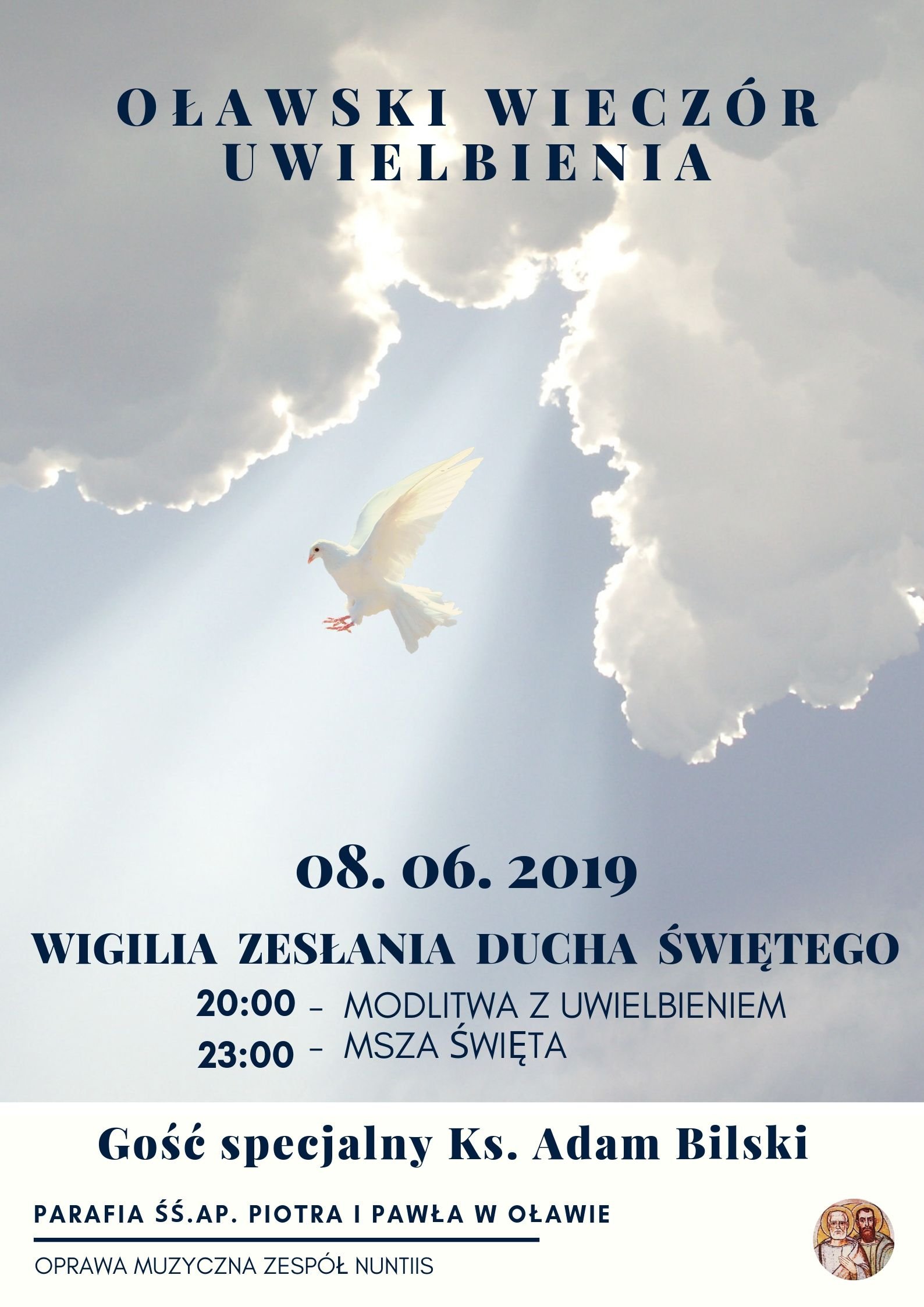 ![]() Zapraszamy na kolejny wieczór uwielbienia, przed uroczystością Zesłania Ducha Świętego - w sobotę 8 czerwca o godz. 20.00. Zwieńczeniem modlitewnego czuwania, które poprowadzi ks. Adam Bilski, będzie Msza św. o godz. 23.00. Oprawę muzyczną zapewni zespół Nuntiis. |