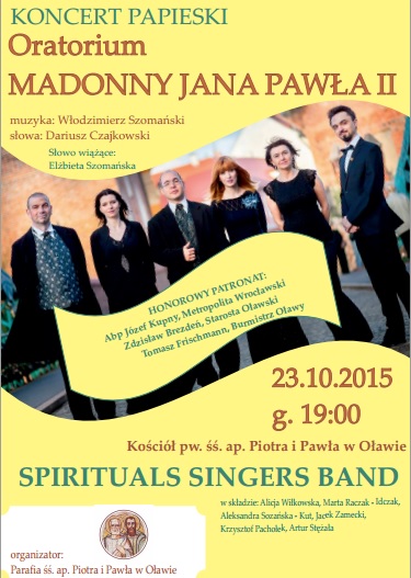 w wykonaniu zespołu Spirituals Singers Band. Patronat honorowy nad koncertem objęli: abp Józef Kupny, metropolita wrocławski, Zdzisław Brezdeń, starosta powiatu oławskiego i Tomasz Frischmann, burmistrz Oławy.