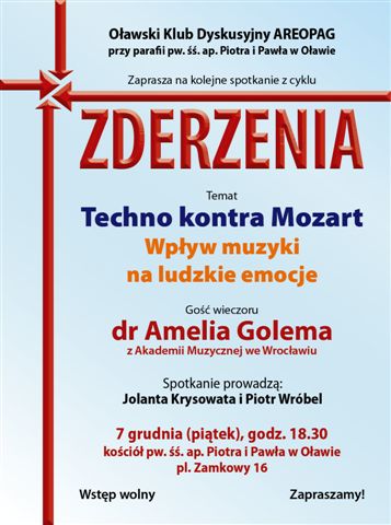 7 grudnia br., godz. 18.30, kościół pw. śś. ap. Piotra i Pawła w Oławie. Gość wieczoru – dr Amelia Golema, Akademia Muzyczna we Wrocławiu.